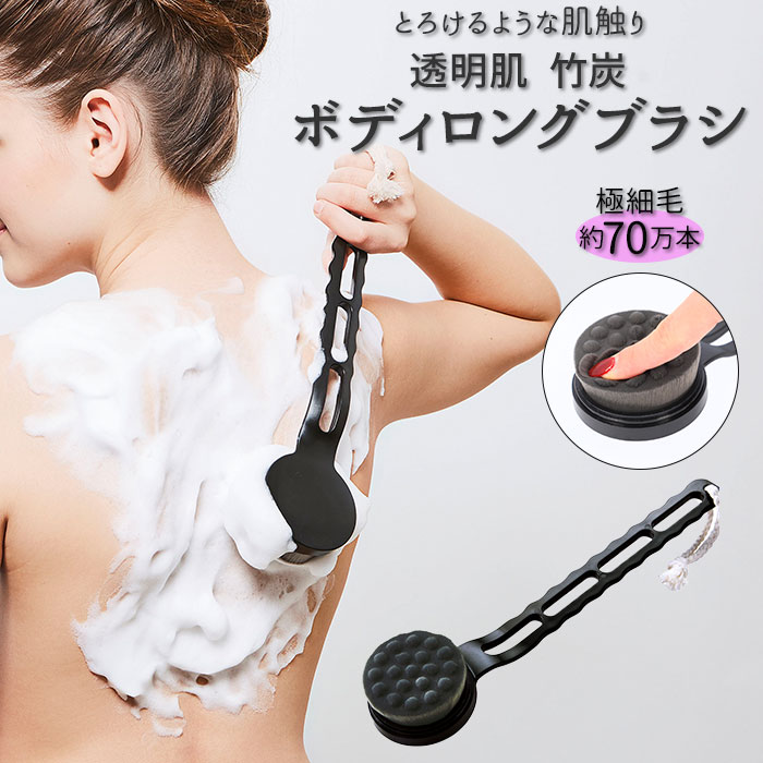 ■竹炭 ブラシ 通販 ボディブラシ 背中 竹炭ボディロングブラシ ボディーブラシ ボディケア スキンケア 極細毛 長め ハンドル 美肌 毛穴汚