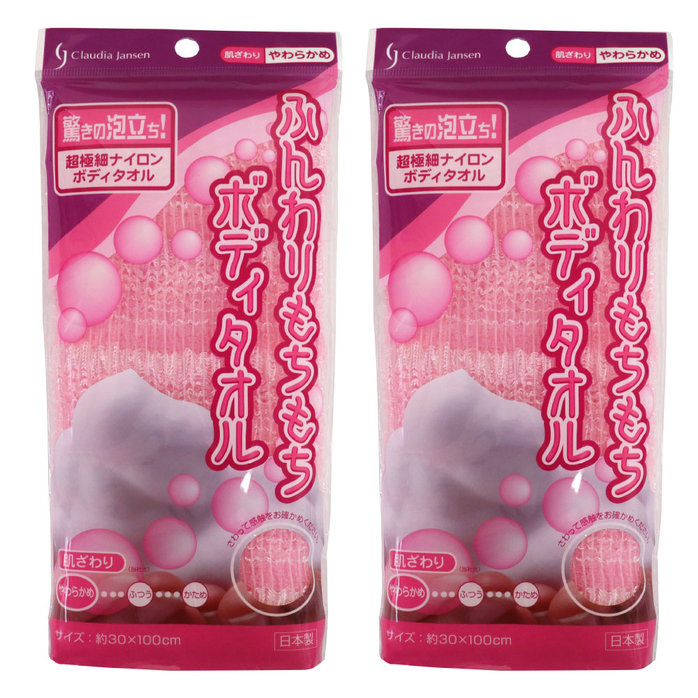 ■ふんわり もちもち ナイロン ボディタオル 日本製 2枚セット やわらかめ 超極細ナイロン ボディケア 入浴 お風呂