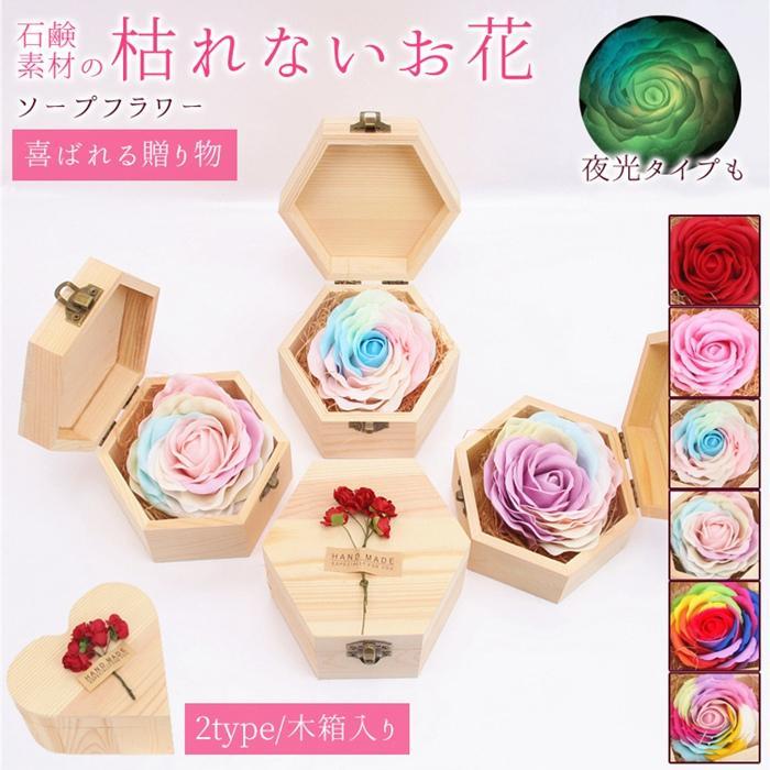 ソープフラワー バラ フレグランス ボックスフラワー 2type 木箱入り カラフル 虹色 枯れない花 花 造花 石鹸花 プレゼント ギフト 誕生