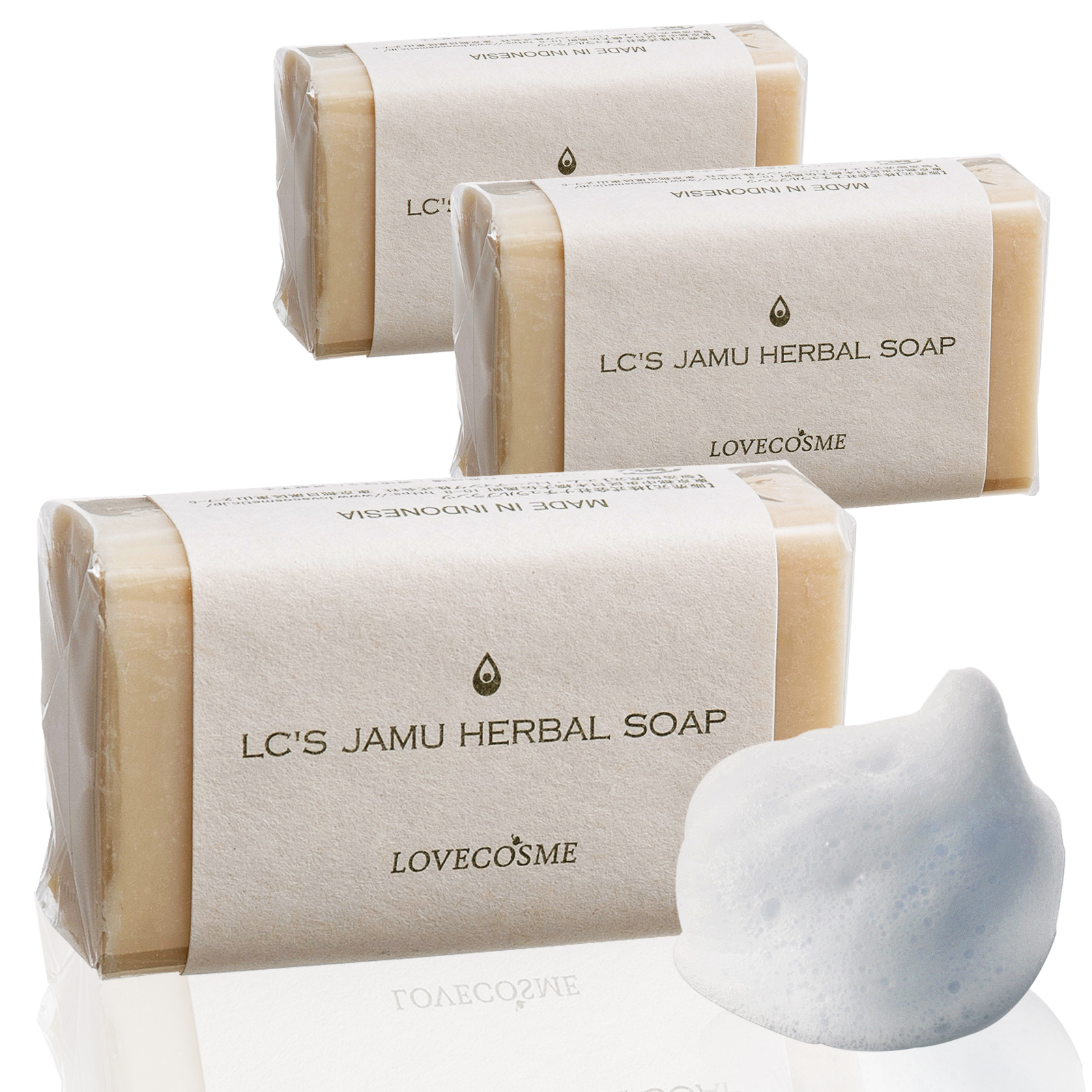LCジャムウ・ハーバルソープ3個セットジャムウソープの使い方は簡単!泡たてネットなどで立てたふんわり泡を、デリケートゾーンの臭いや黒ずみ汚れなどの気になる部分にのせて、3分間パックするだけ。アソコのニオイを洗い流して、素肌をスッキリ爽快ケア。植物由来の成分で作られた石鹸で、保存料・安定剤等は一切使用しておらず、全身にもお使い頂ける優しいデリケートゾーンソープです。おりものやデリケートゾーンの臭いだけではなく、乳首の黒ずみ汚れなどにお悩みの方にも、おすすめします。※石鹸の鹸化について:石鹸は作り立ての状態ですと、不要な水分を含んでいることがあります。また、製造から日数が経つと、余分な水分が飛び、内容物が凝縮されます。これを乾燥と感じる場合もございますが、純練り石鹸の特徴でもあります。標準重量±10%の範囲内となります。品質には問題ありません。あらかじめご理解くださいませ。