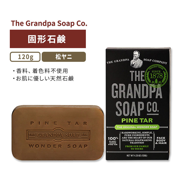 GB-00701 ※メーカー都合によりボトルデザイン、成分内容等に変更がある場合がございます。▼内容量 / 形状120g(4.25oz) / 固形石鹸▼成分内容パーム酸ナトリウム*、ココ酸ナトリウム / パームカーネル酸ナトリウム、水(アクア)、グリセリン、パルタリスウッドタール、塩化ナトリウム、グルコン酸ナトリウム*レインフォレストアライアンス認定▼ご使用の目安シャンプー、ボディソープ、洗顔料として全身にご使用いただけます。▼メーカーGrandpa's(グランパ)▼ご注意・詳しくはメーカーサイトをご覧下さい。▼キーワードバス用品 せっけん 石けん 石鹸 全身用 ボディ 女性 男性 自然派 植物石鹸 セッケン 松 マツヤニ まつ 固形せっけん シャンプー トリートメント リンス しゃんぷー ぼでぃそーぷ せんがん