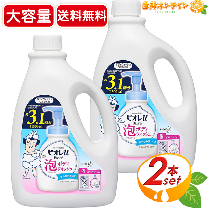 ■≪1500ml×2セット≫【Biore】ビオレu 泡で出てくるボディウォッシュ つめかえ用 大容量 1.5L 泡タイプ 詰め替え用 ボディソープ 石鹸 特