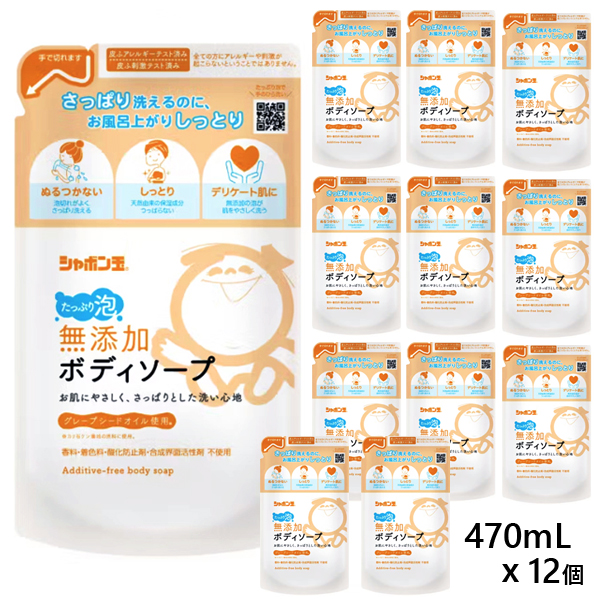 ■無添加ボディソープ たっぷり泡 つめかえ用 470mLx12個 [詰替え 詰め替え ボディシャンプー ボディ石けん まとめ買い シャボン玉石け