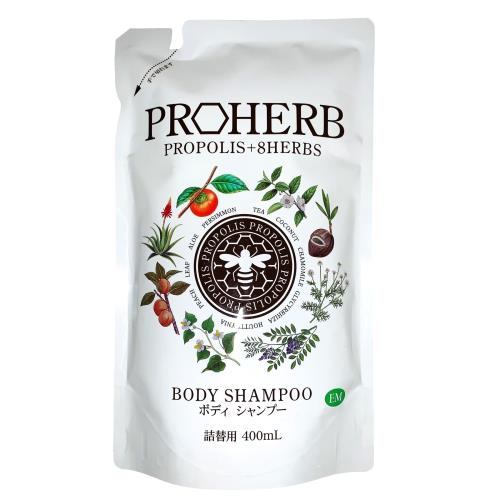 ■プロハーブ EM ボディシャンプー 天然ハーブ プロポリス ハチミツ ヒアルロン酸 無香料 無着色 パラベンフリー 詰替え用 400ml