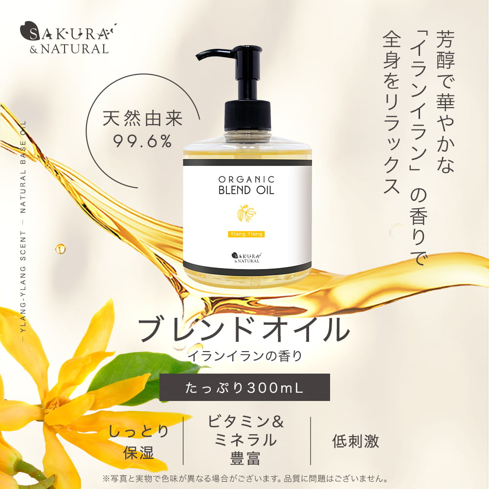 ■マッサージオイル イランイラン ブレンドオイル 300ml ボディオイル アロママッサージオイル オーガニック 大容量 マッサージ オイル 業