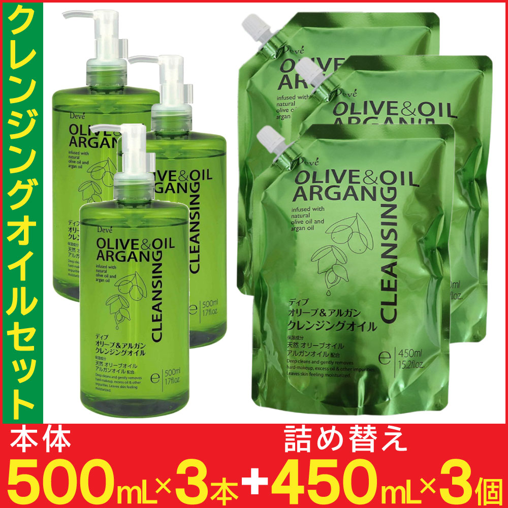 ■クレンジングオイル メイク落とし セット 本体500ml×3本 詰替450ml×3個 オイル ディブ オリーブ&アルガン