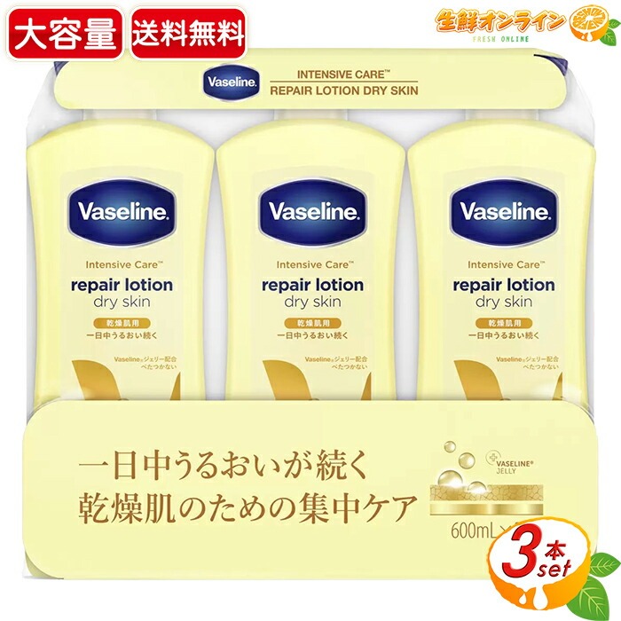 ■【Vaseline】ヴァセリン リペアローション ドライスキン 乾燥肌用 大容量 600ml×3本セット ボディミルク ボディローション ヴァセリンロ