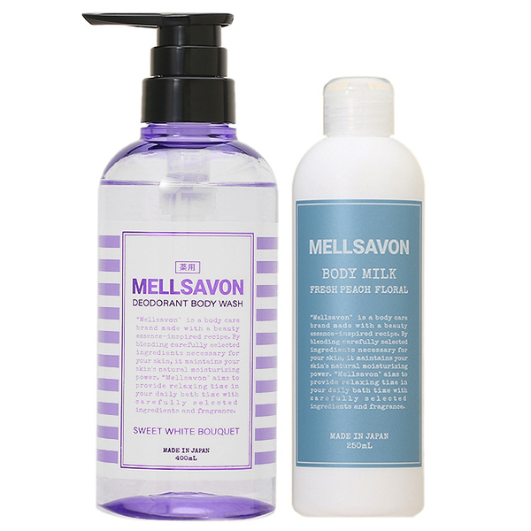 ■【セット】 メルサボン デオドラントボディウォッシュ スイートホワイトブーケ + ボディミルク フレッシュピーチフローラル