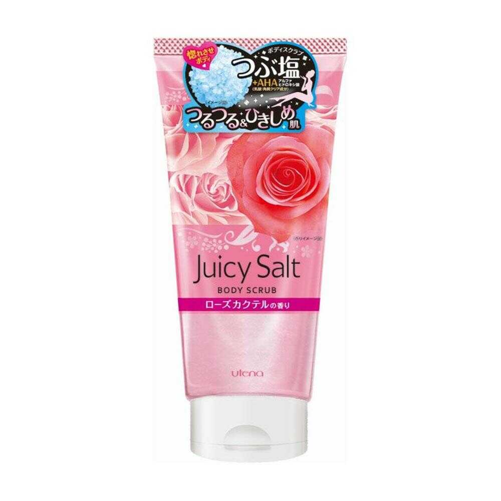 つぶ塩スクラブ&AHAを配合した泡立つボディスクラブ。ざらつきや古い角質、汚れをすっきり落とし、つるつる・ひきしめ肌に。しっとりうるおったお肌をたもちます。ロマンティックローズカクテルの香り。JuicySalt、ボディ洗浄料、ボディスクラブ、つぶ塩、AHA、角質、ひきしめ、ウテナ