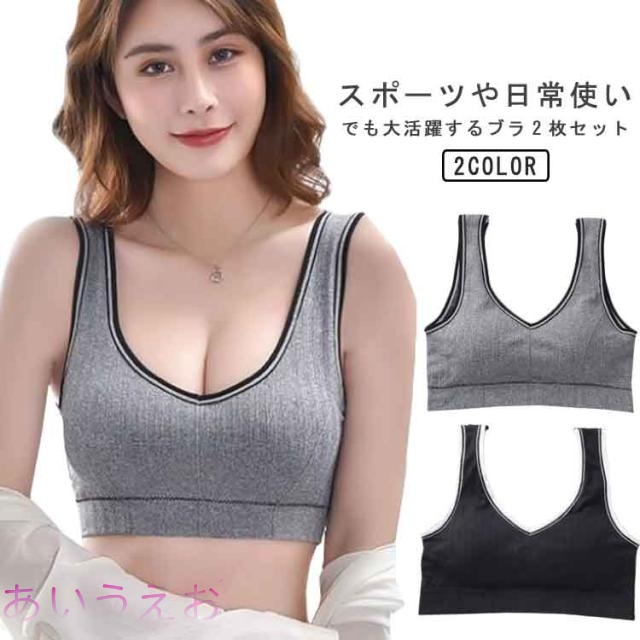 ■ナイトブラ スポーツブラ 2枚セット 大きいサイズ カップ付き 育乳 ブラジャー 育乳ブラ ノンワイヤー ブラ 小胸 脇肉 バストケア 谷間