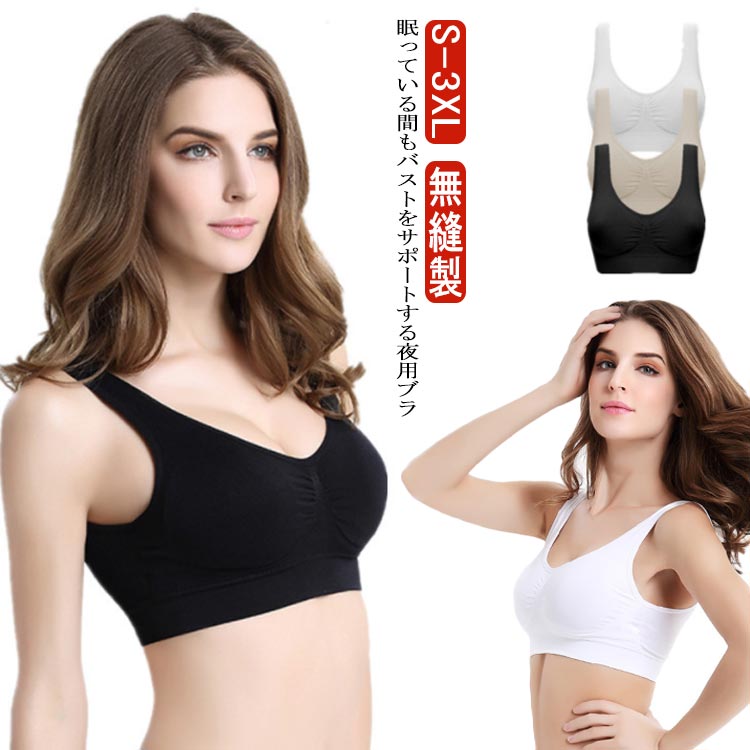ナイトブラ レディース スポーツブラ ノンワイヤーブラ ブラジャー 肩紐なし ブラトップ シームレス ノンワイヤーブラジャー バストケア ホックなし ナイトブラ インナー 通気性 パット付き 美乳 シンプル グリーン ブラック グレー ベージュ