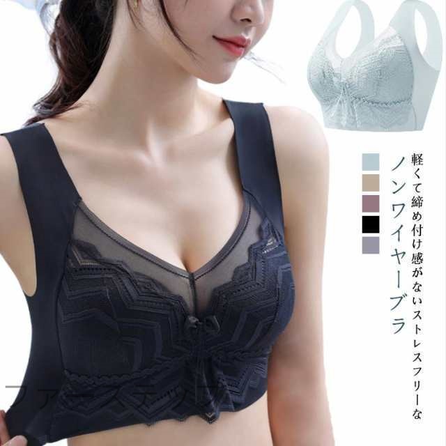胸を小さくみせるブラ 胸を小さく見せる レース ブラジャー 補正ブラ 脇高 ブラ ノンワイヤー 大きいサイズ 胸を小さく見せる バストケア