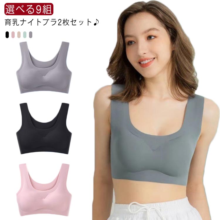 ■ナイトブラ 2枚セット 育乳 バストアップ ブラジャー ナイトブラ バストケア 夜用 補正 補正下着 ノンワイヤー 育乳ブラ ベージュ ブラッ