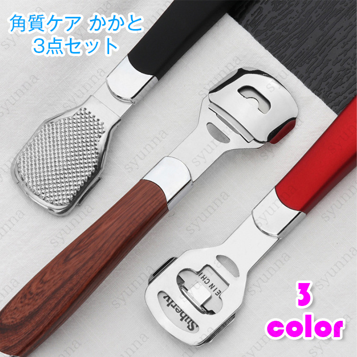 ■フットケア 日本国内当日発送 3点セット 角質ケア 角質削り 角質除去 魚の目 ウオノメ かかと 足裏 替刃付き ステンレス製 ツルツル 角質