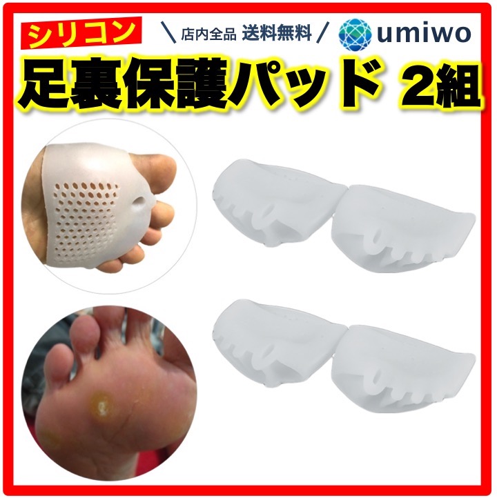 ■足裏保護パッド 2組(4個)セット シリコン 白 5本指 痛み 軽減 クッション 衝撃吸収 足指 開く 足裏 マメ タコ フットケア 保護 フリーサ