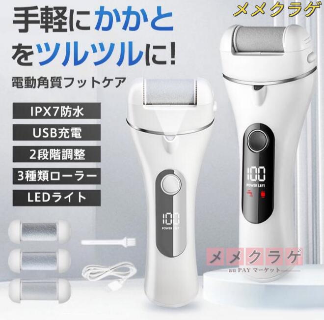 かかと 角質ケア 電動 角質除去 やすり 電動リムーバー 角質取り 2段階調節 3種ローラー 角質やすり フットケア LEDライト IPX7防水 充電式