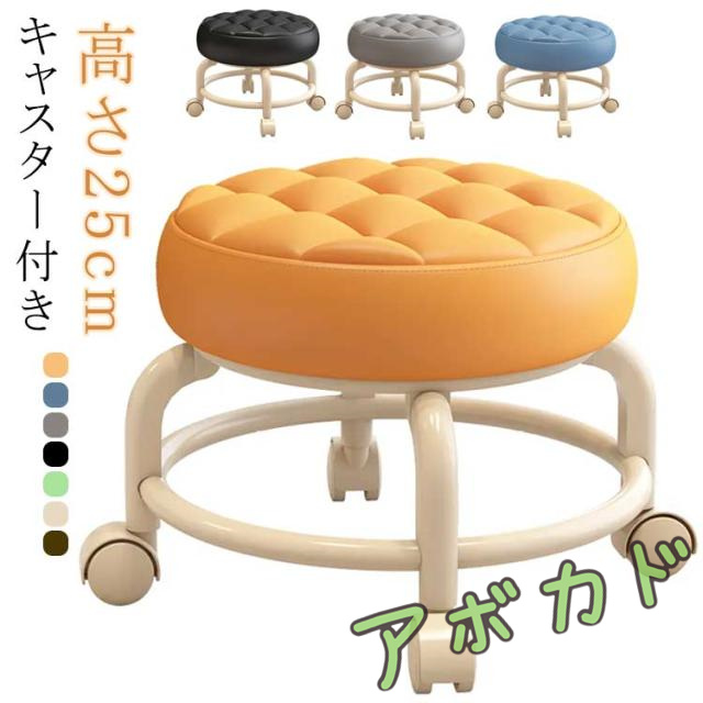 ■ロースツール キャスター キャスター付き 高さ25cm 北欧 キルティング 椅子 スチール脚 全7色 ミニ スツール スツール フットケア 低め