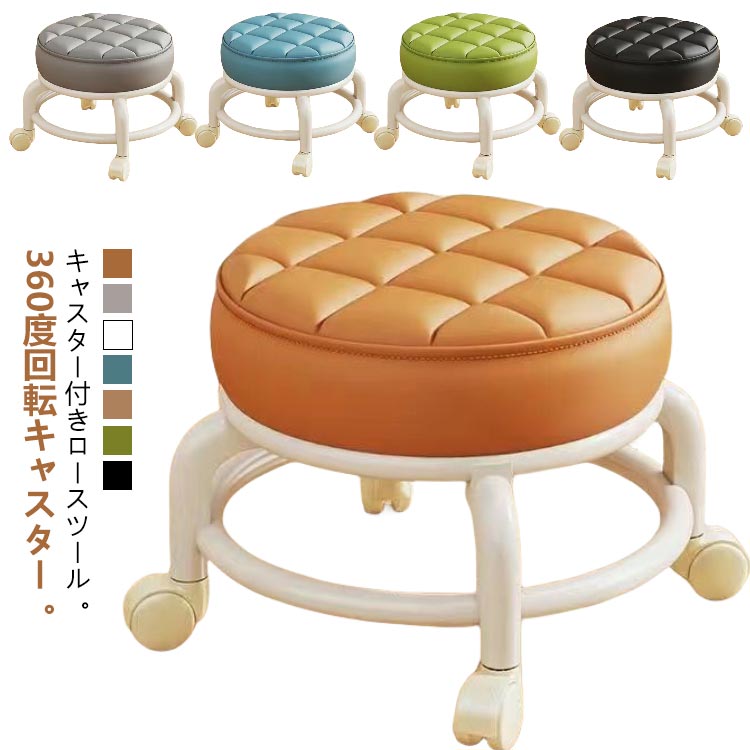 ■ロースツール 丸椅子 作業椅子 キルティング キャスター付き スツール 椅子 作業チェア PUレザー 低め ミニ 椅子 チェア 防水 フットケア