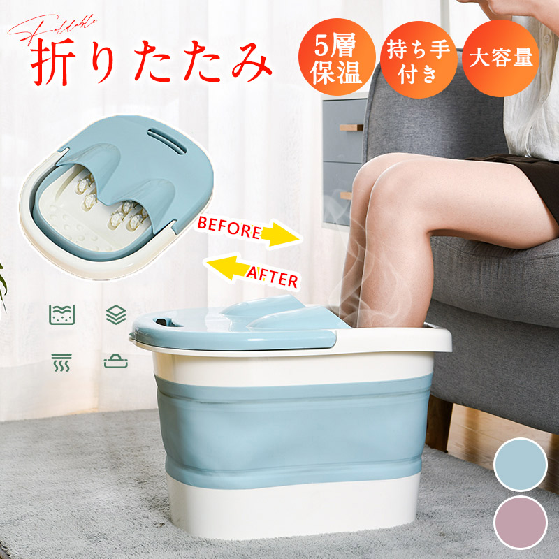 ■フットバスバケツ 足湯バケツ 足湯 バケツ 足湯器 蓋つき 持ち手付き フットバス フットケア 自宅 折りたたみバケツ 保温 便利 旅行