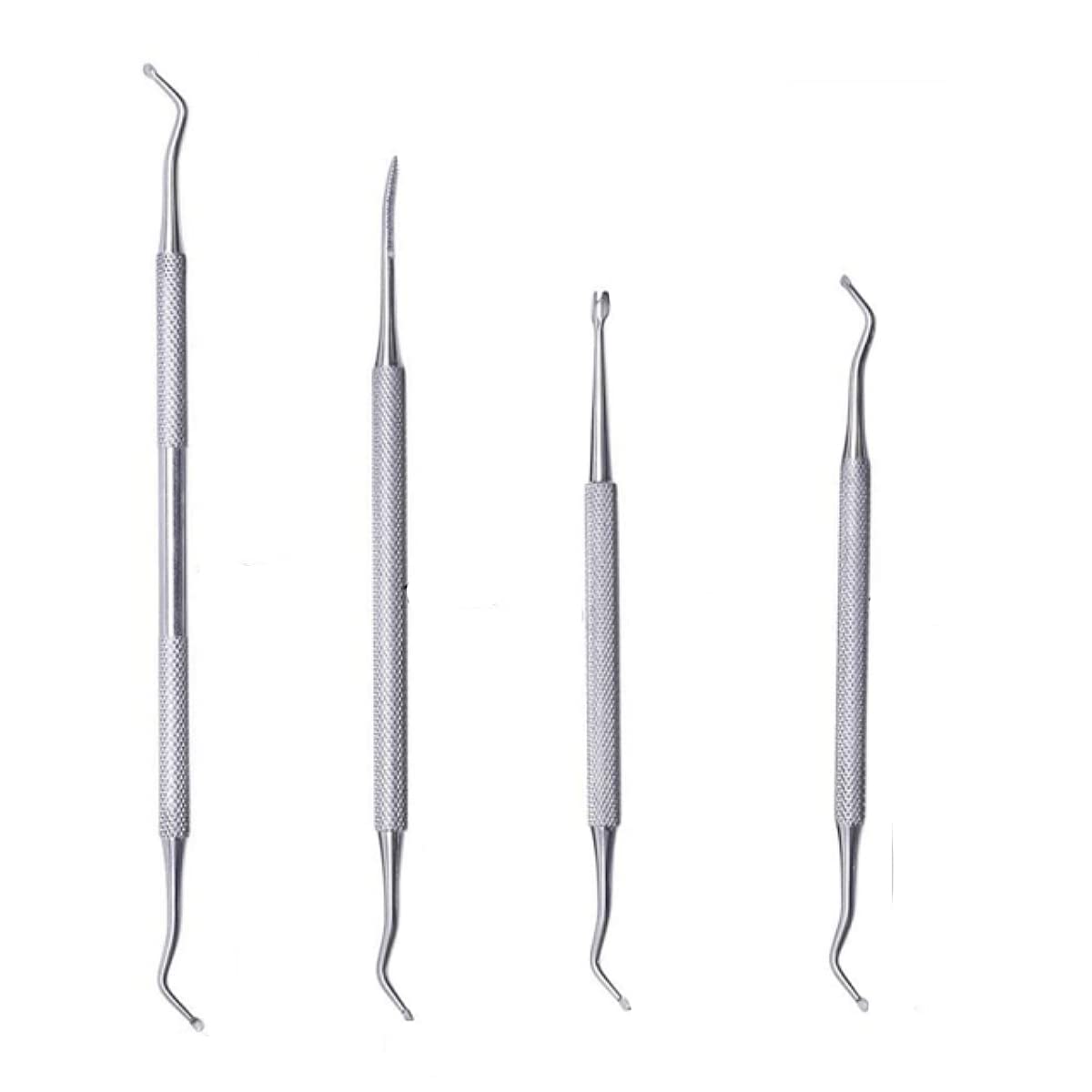 ■爪垢取り ステンレス製 爪リフター 爪やすり ゾンデ 甘皮処理 巻き爪 厚い爪 足 爪ケア フットケア ネイルケア 4点セット