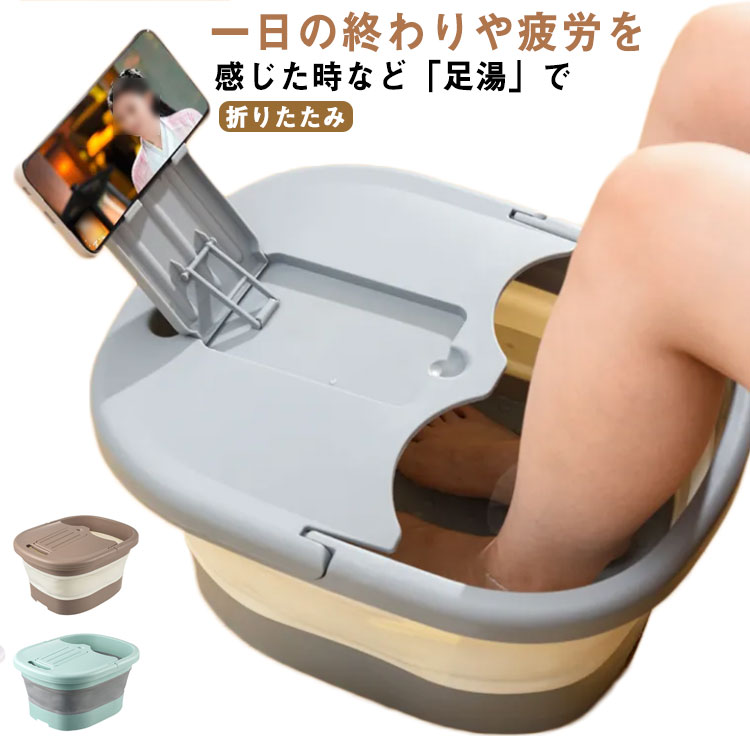 ■フットバス 足湯 足浴器 折りたたみ フットケア 蓋付き スマホスタンド付き リラックス マッサージローラー フットバスボウル 足湯グッズ