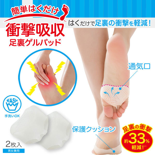 ■衝撃吸収足裏ゲルパッド 歩行 フットケア 足の裏 体圧分散 軽減 足疲れ 健康グッズ 脚の痛み 手洗いOK