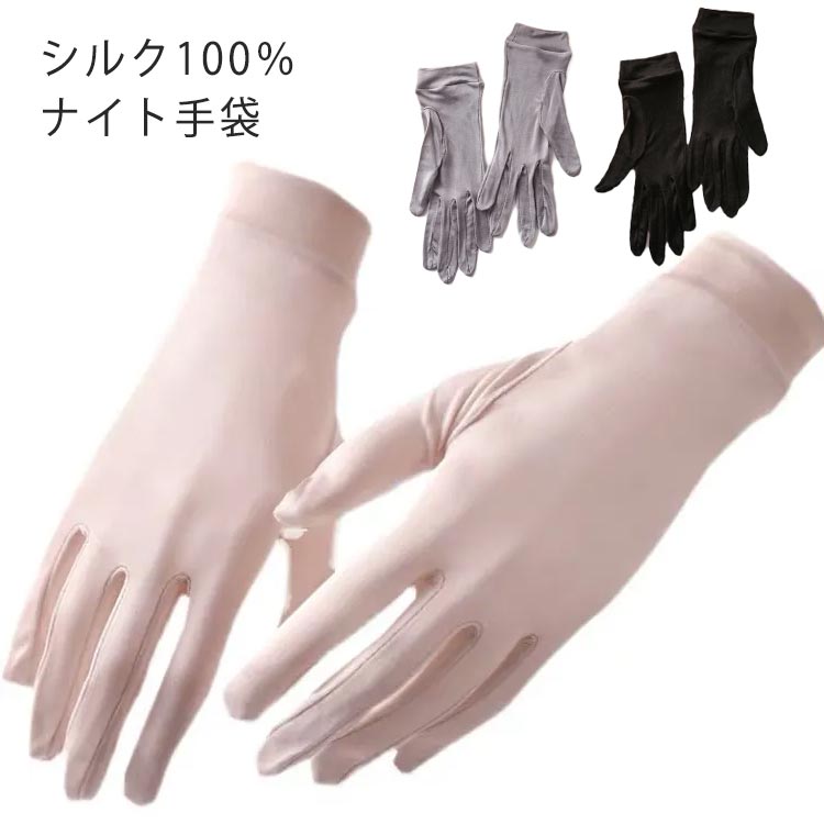 ■おやすみ手袋 レディース シルク 100% 4色 肌に優しい ハンドケア 手荒れ 保湿 絹 手袋 手首 寝るとき 乾燥対策 ナイト手袋 保湿手袋 プ
