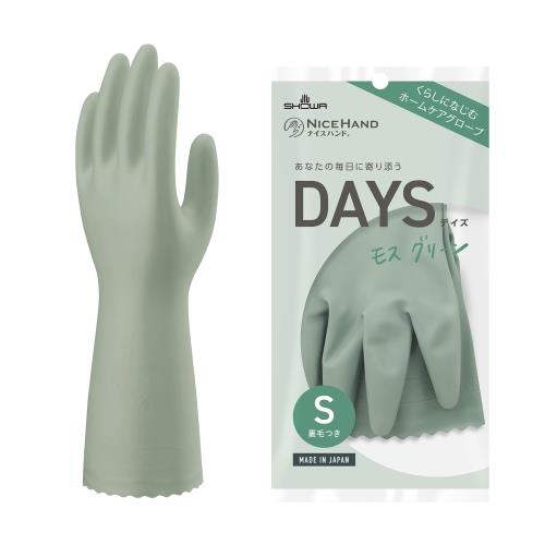 ■[ショーワグローブ] 日本製・塩化ビニル樹脂手袋・ハンドケア ナイスハンドDAYS デイズ Sサイズ モスグリーン 1双 インテリアになじむニ