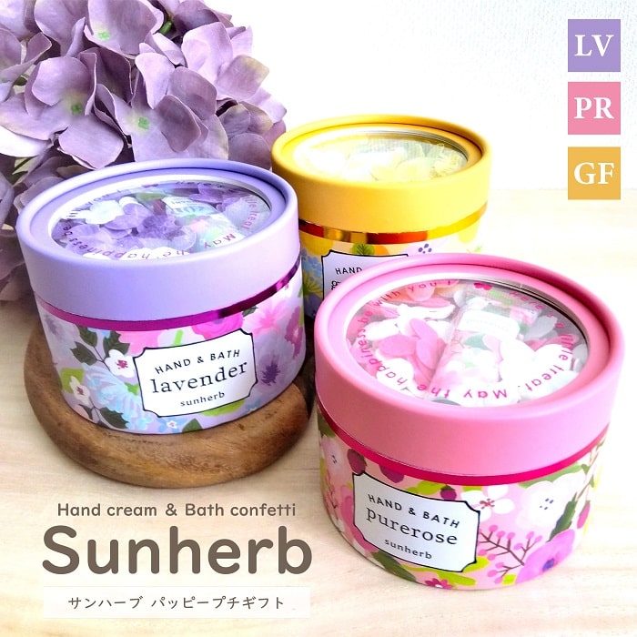 ■バス用品 サンハーブ ハッピープチギフト ハンドクリーム&バスコンフェッティ入り ギフトセット 入浴剤 花びら風呂 泡風呂 バブルバス