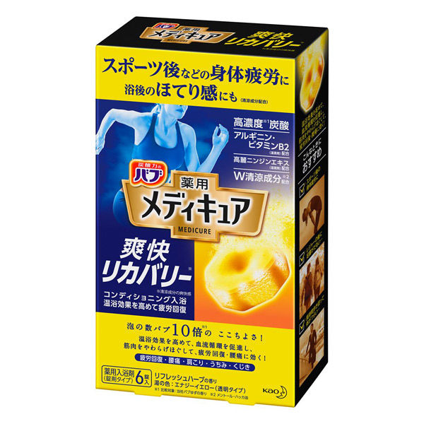 ■【医薬部外品】花王 バブ メディキュア 入浴剤 爽快リカバリー 6錠入 温浴効果 血流循環 促進 スポーツ後 身体疲労 疲労回復