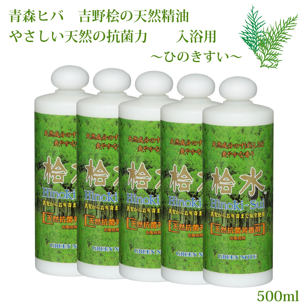 ■桧水 ひのきすい 500ml 5本セット 送料無料 桧 風呂 グリーンノート 入浴剤 入浴用 天然 抗菌 消臭 芳香 除菌 森林浴 リラックス ヒノキ