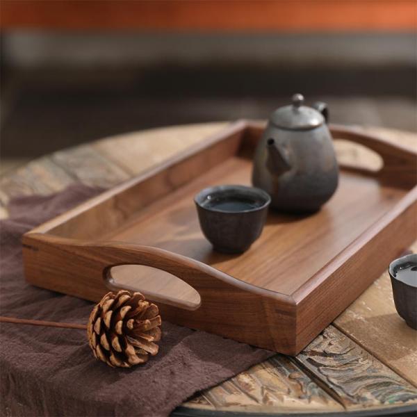 ■トレイトレー黒クルミの木木製取っ手付天然木製お盆食事トレー長方形ランチトレイカフェトレイ茶具フレア和風ブラウンアクセサリートレイ