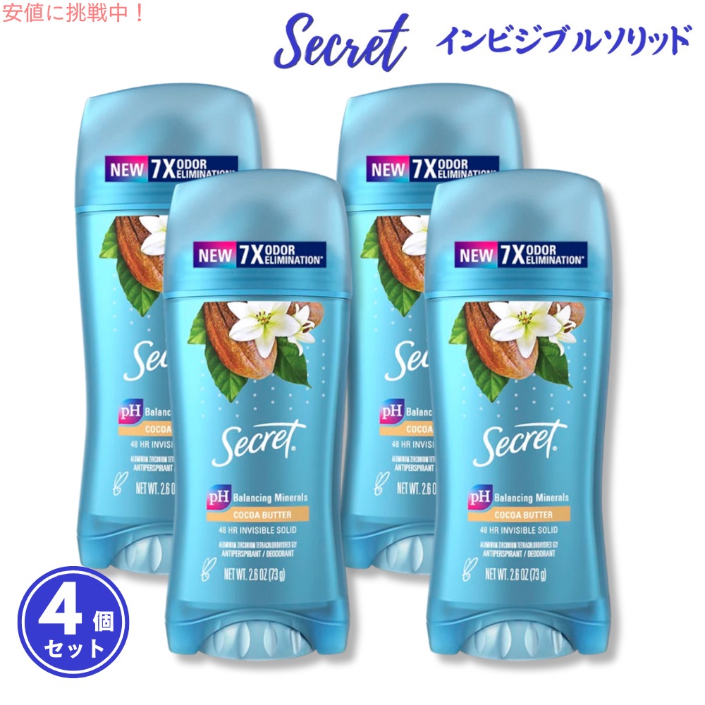 ■【4個セット】Secret シークレット インビジブルソリッド ココアバター デオドラント 73g Secret Invisible Solid Cocoa Butter 2.6oz