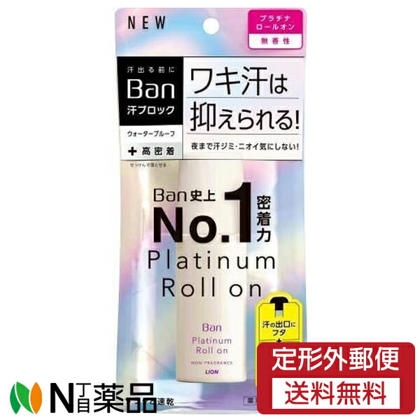■【定形外郵便】ロート製薬 Ban(バン) 汗ブロック プラチナロールオン 無香性 (40ml) <ワキのニオイ対策 デオドラント 制汗 皮フ汗臭