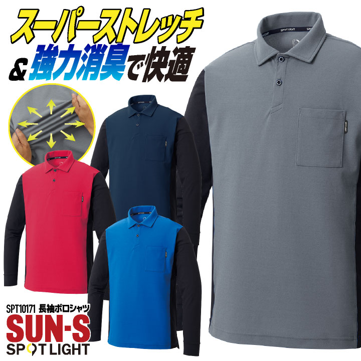 ■サンエス 半袖 長袖ポロシャツ 春夏 メンズ レディース ストレッチ 消臭 デオドラント ドライ 仕事服 作業着 作業服 カジュアル シンプル