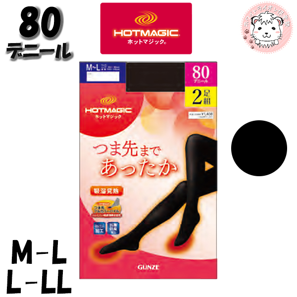 ■グンゼ ホットマジック タイツ 2足組 80デニール 吸湿発熱 抗菌防臭 デオドラント M-L/L-LL 秋冬 秋 冬 レディース ナイロン 肌着 イン