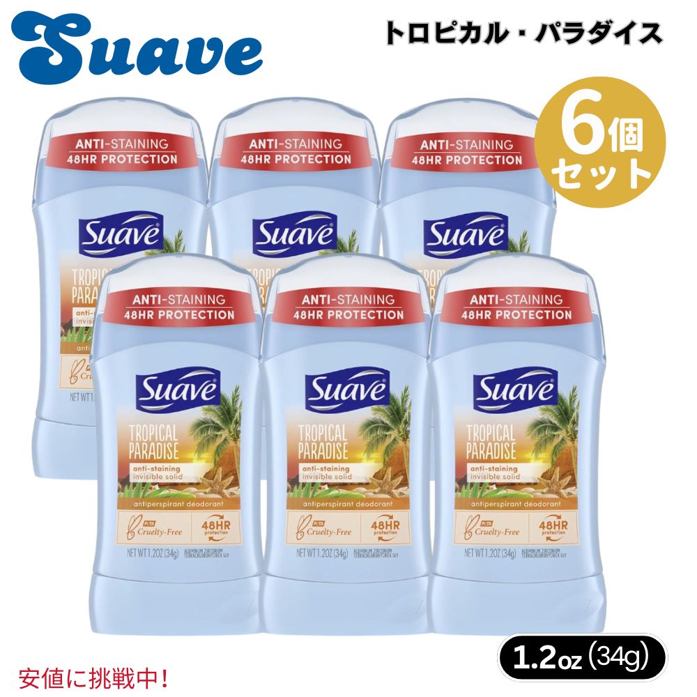 ■6個セット Suave スエーヴ Tropical Paradise Invisible Solid Deodorantト34g トロピカルパラダイス インビジブルソリッド デオドラント