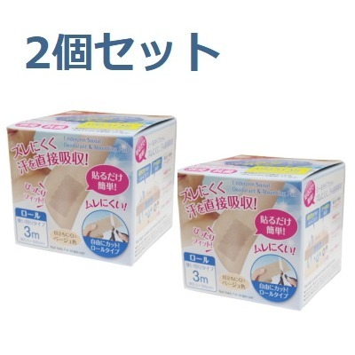 ■【即納】ワキに直接貼る消臭汗取りシート ロールタイプ 2個セット 3mX2 汗取り ワキ汗 ワイド 夏 消臭 ベージュ 肌色 デオドラント