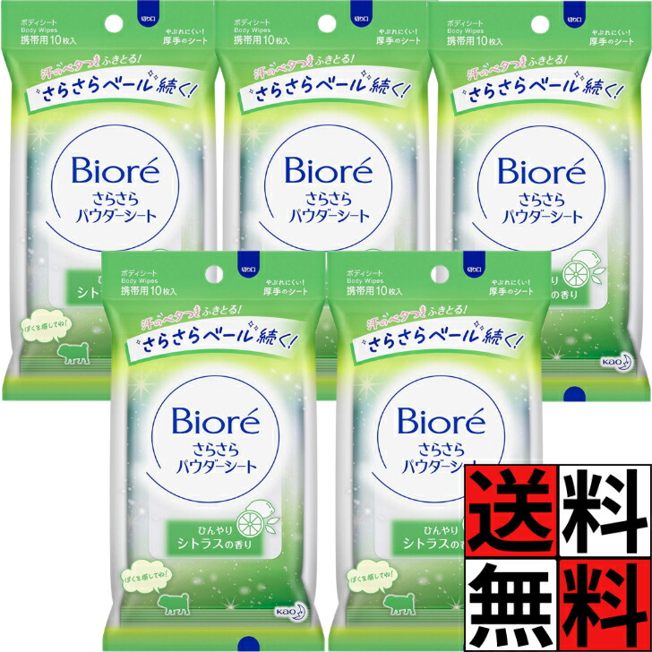 送料無料 ビオレ さらさらパウダーシート ワキ 足 からだ 肌 殺菌 成分 配合 ニオイ 長時間 ブロック 厚手 シート 薬用 デオドラント シトラス 香り 携帯用 10枚