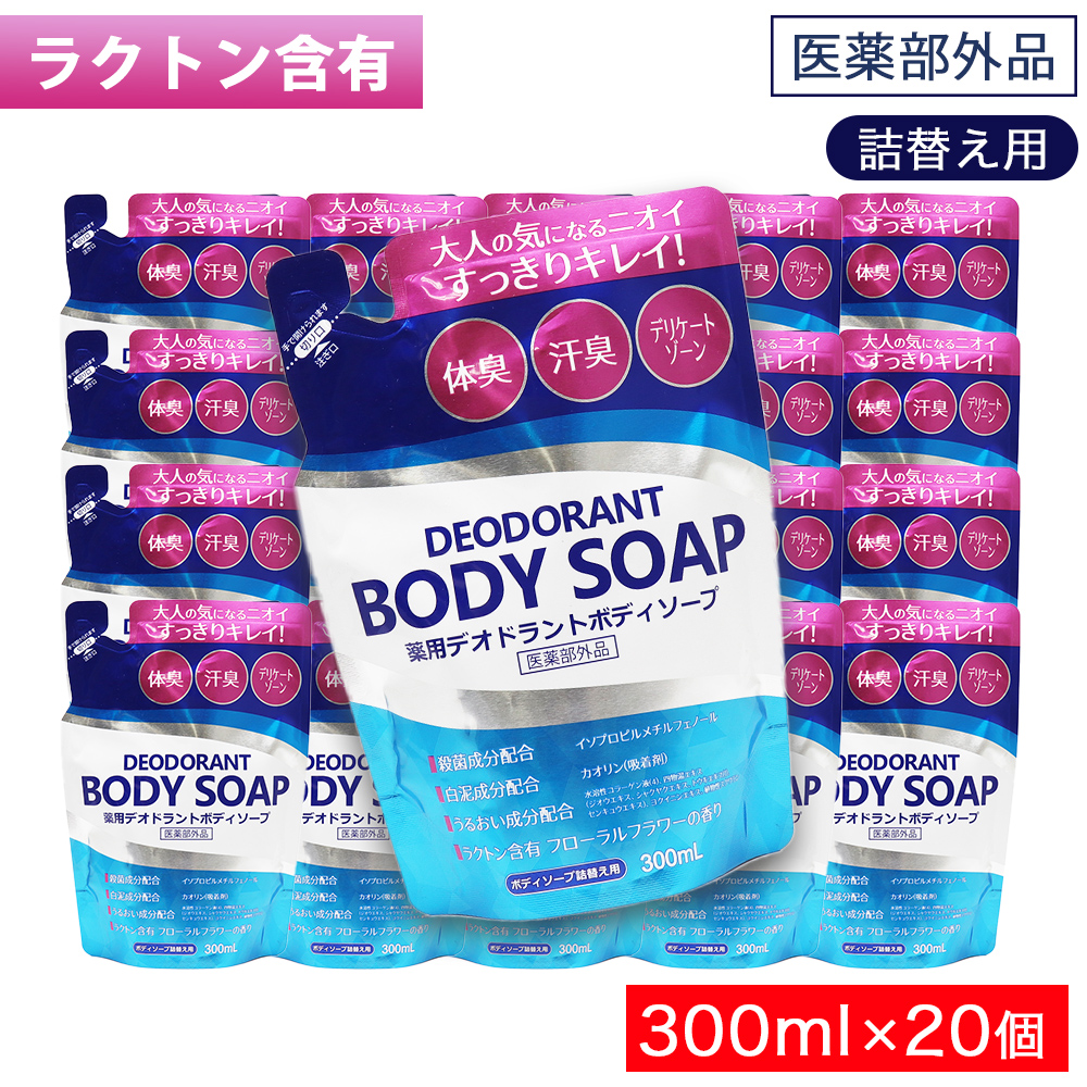 ■薬用 デオドラント ボディソープ 詰替え用 300mL ×20個 体臭 汗臭 デリケートゾーン 日本製 医薬部外品