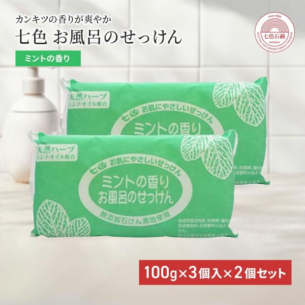 ■固形石鹸 無添加 七色石鹸 お風呂のせっけん ミントの香り 100g×3個入 2個セット 国産 消臭 デオドラント 汗 ボディ