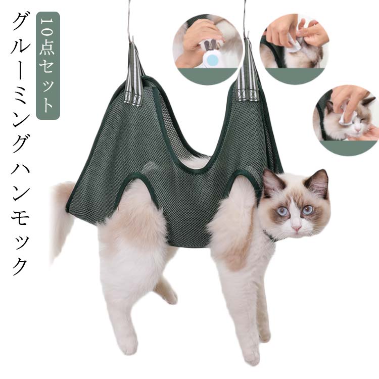 ■グルーミングハンモック 犬 ペット用品 S字フック 10点セット ハンモック 爪切り トリミング ペット美容 お風呂 入浴 ドライヤー 歯磨き