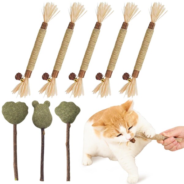 ■CANPLUS 8本入り 猫 おもちゃ 噛むおもちゃ ぬいぐるみ またたびの木 (5本入り)+キャットニップおもちゃ(3本入り) 人気 歯磨き 歯ぎし