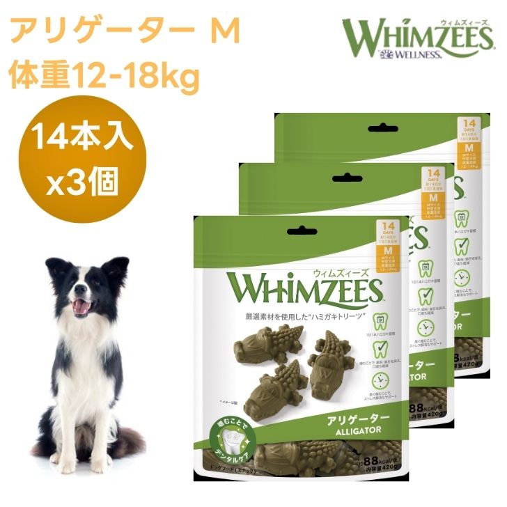 ■ウィムズィーズ アリゲーターM 中型犬向け 体重12-18kg 14個入りx3個 ワニ ドッグフード 犬 餌 おやつ トリーツ 歯磨き ハミガキ 植物