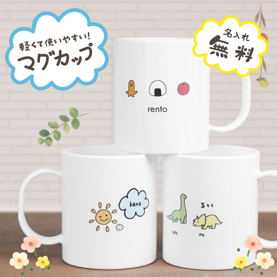 ■プリント無料名前入り マグカップ 子供 絵 イラスト 歯磨き コップ 両面 プリント プラスチック 誕生日プレゼント 名入れ プレゼント マ