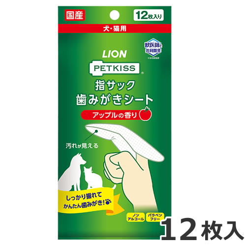 ■ライオン ペットキッス PETKISS 指サック 歯みがき シート アップルの香り 12枚入 犬猫用 国産 歯磨き デンタルケア オーラルケア