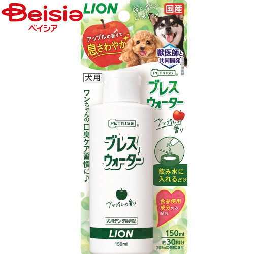 ■ライオンペット PETKISSブレスウォーターアップルの香り150ml ペット 犬 歯磨き 液体 歯磨き 口臭予防 デンタルケア アップル ブレスウ
