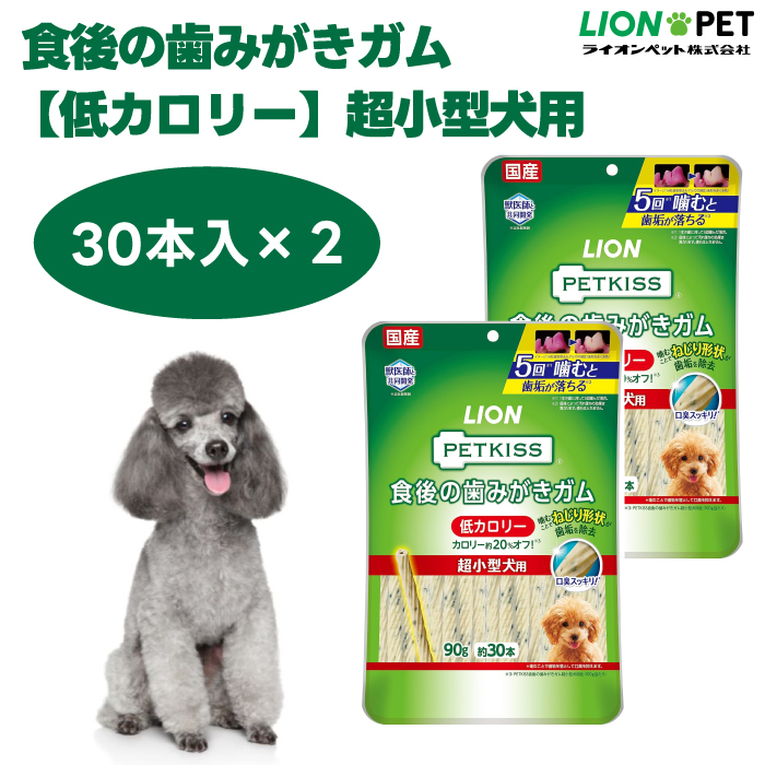 ■ライオン PETKISS 食後の歯みがきガム 低カロリー 超小型犬用 90g 30本 x2個 犬 歯磨き おやつ LIONPET