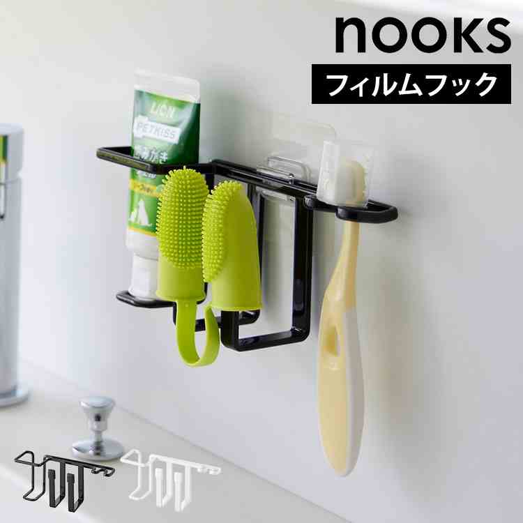■山崎実業 フィルムフックペット用歯磨きセットホルダー ヌークス 5308 5309 ホワイト ブラック nooks 公式 ペット用 歯磨き 歯ブラシ 収
