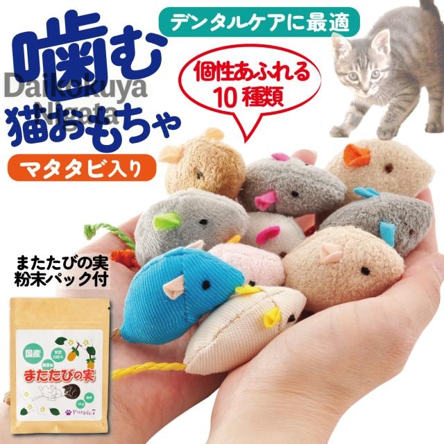 ■猫 おもちゃ ねずみ 歯磨き 10点 キャットトイ 猫用玩具 デンタルトイ 噛むおもちゃ 歯垢除去 かわいい またたびの実粉末パック付き